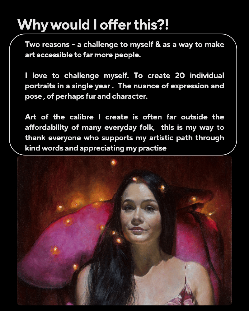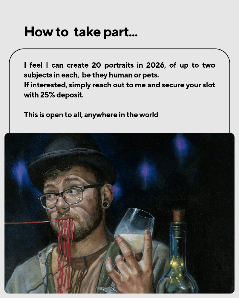 There are only 20 available slots for this project - of either one or two subjects in each painting.