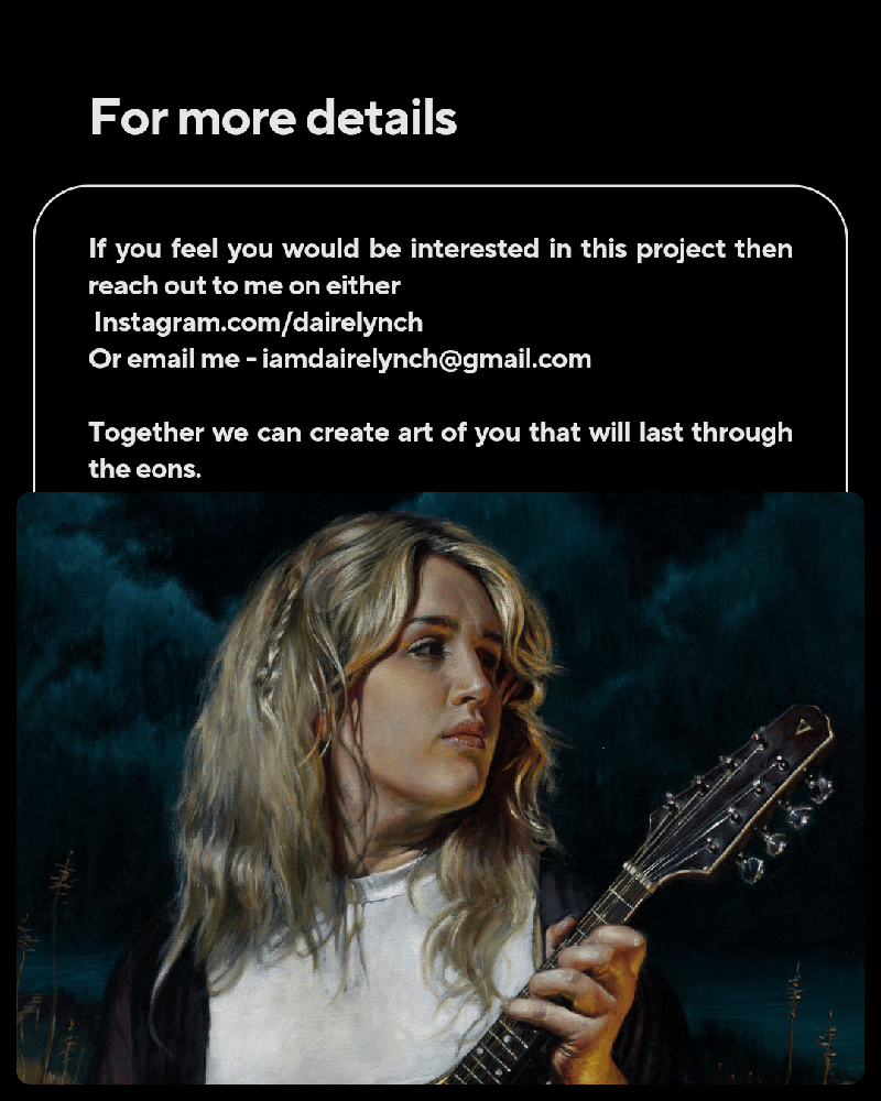 I am based in West Cork and generally shoot my own reference images for my paintings as I get to converse with the subjects and capture character in the moment. That said, this is open to an international audience, therefore photographers can be organised to capture references as per my direction and we go from there.